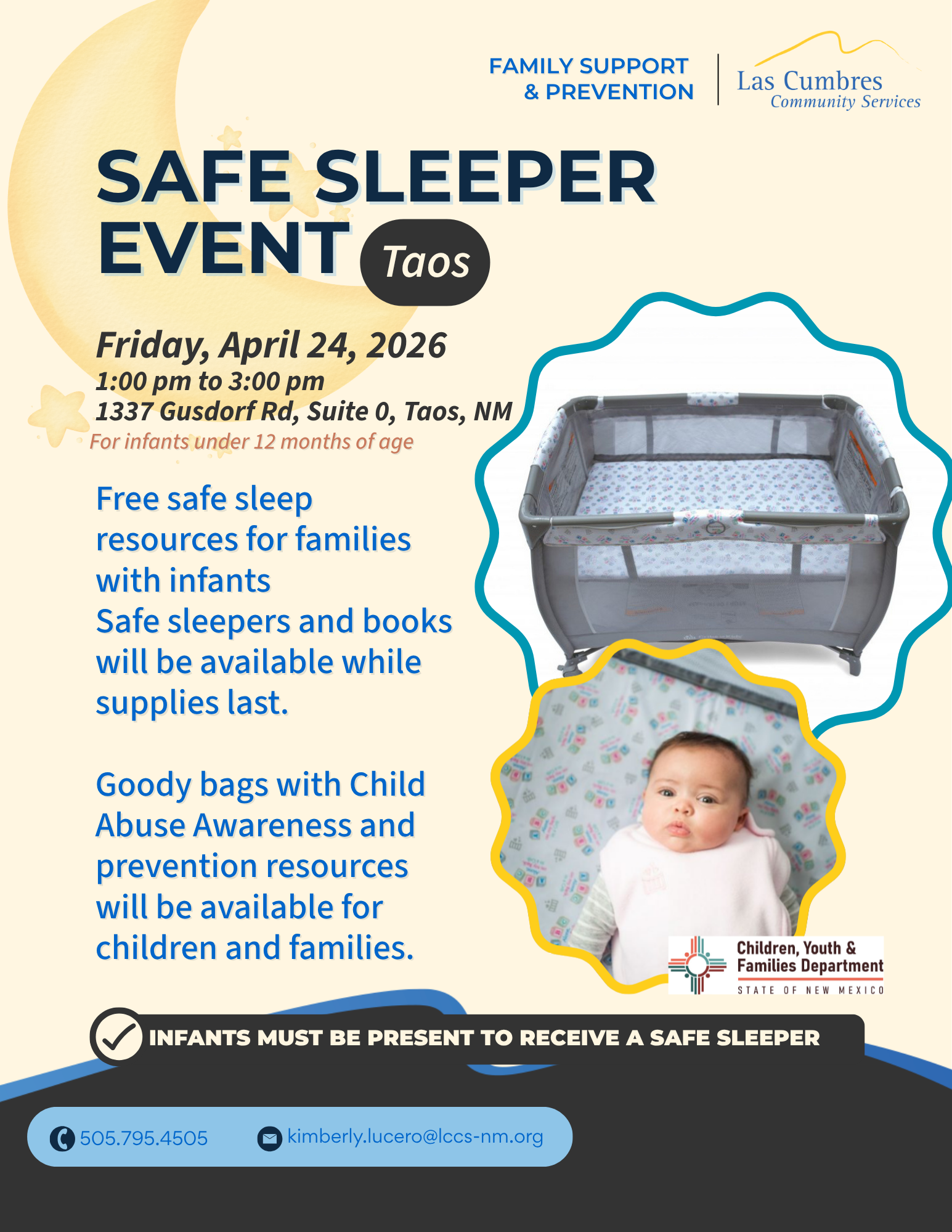 Safe Sleeper Event - Taos Friday, April 24, 2026 1:00 PM 3:00 PM Las Cumbres Taos Center 1337 Gusdorf Road Taos, NM, 87571 United States (map) Google Calendar ICS Email or Call/Text